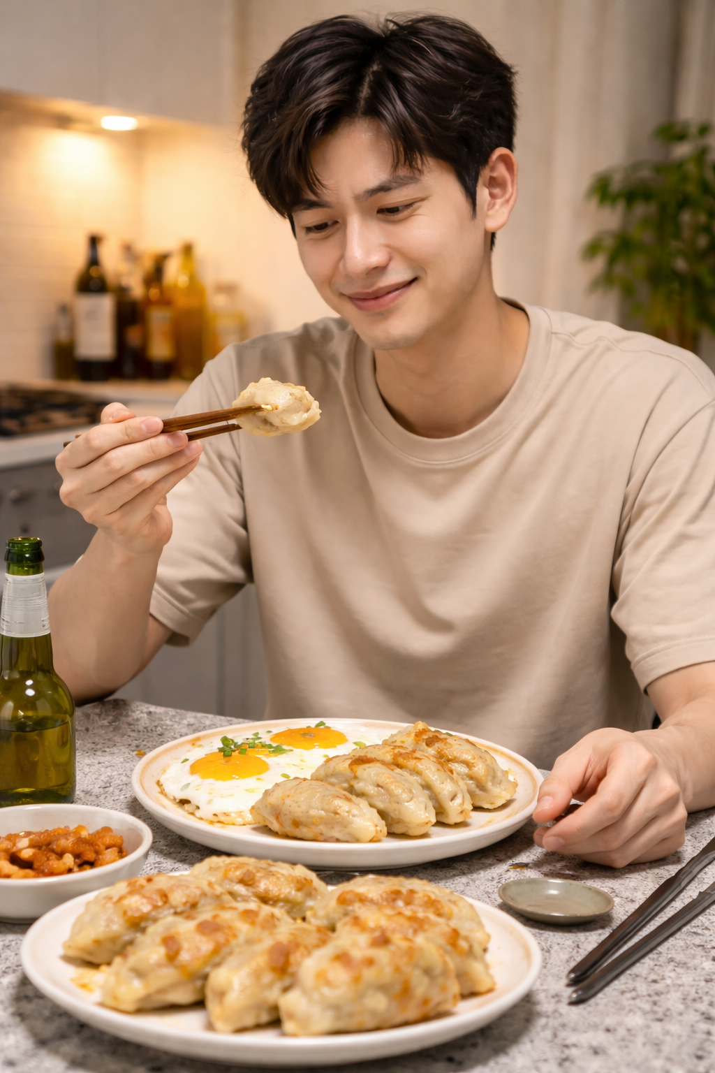 만두 구워주면서 한쪽에 계 톡! 간장 한 방울이나 케첩 살짝 곁들이면 은근히 조합이 잘 맞습니다.
